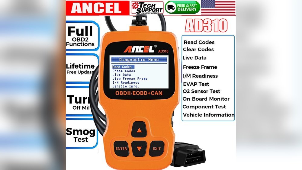 The Ancel AD310 is a handheld OBD2 scanner. OBD2 stands for On-Board Diagnostics II. This system is built into all cars sold in the USA since 1996 and in most modern cars worldwide. The AD310 is known for its simple design, clear display, and affordable price. It helps car owners read and clear trouble codes, view live data, and check vehicle readiness.